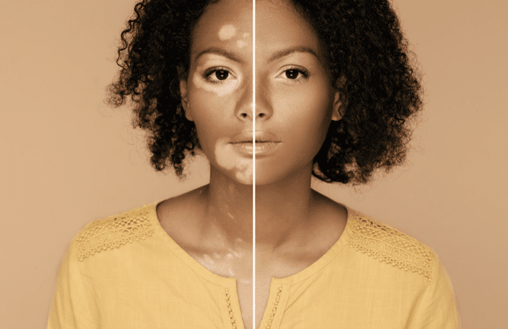 - Address vitiligo, in which white, pale patches appear on the skin due to a lack of melanin
